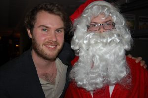 Kuvassa vuoden 2011 Taideakatemian ahkerin opiskelija Mikko Juntura ja joulupukki